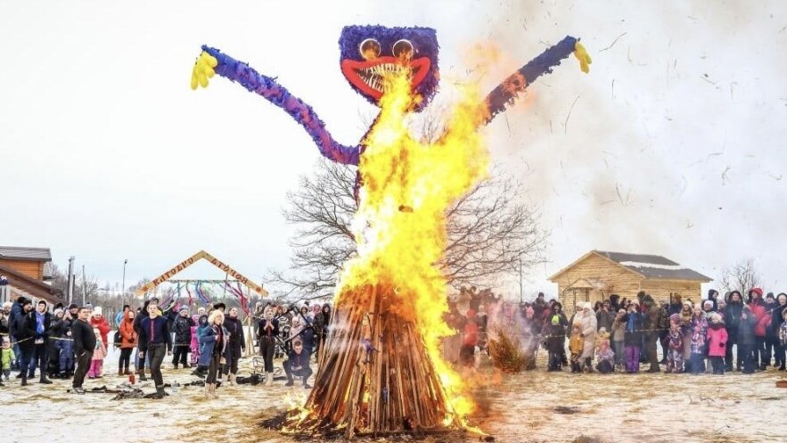 Масленица позади. В этом году традиционный праздник не обошёлся без современных новшеств. В Липецкой области жители не только ели блины, но и наблюдали за шоу с популярным детским монстром — Хагги Вагги, которого сожгли из огнемёта. Это далеко не первый «западный злодей», преданный огню на праздник. Кто ещё «отдувался» за «вселенское зло» поговорим сегодня. Пропал синий Хагги Вагги! Пушистые игрушки стали массово продаваться из-за выхода хоррора Poppy Playtime в 2021 году. Улыбчивое миловидное с виду существо сразу понравилось детям. Его альтернативный злой вид с множеством зубов и когтями вызывал только больше интереса. Однако продажи Хагги Вагги прекратились после новости о высоком проценте токсичности. Согласно проверке Роскачества, почти 90% исследованных изделий превышали норму содержания опасных веществ. «Я увидел новость, что эта игрушка вредная. Думаю, раз её на официальном уровне запрещают, то почему бы нам её не сжечь, — рассказывает «Газете.Ru» директор парка «Аргамач» Алекс