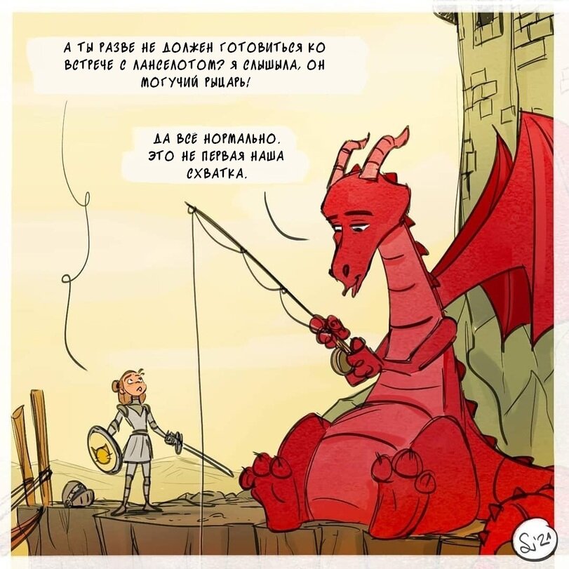 Забавные комиксы о рыцаре и драконе от швейцарской художницы Сары Веттори