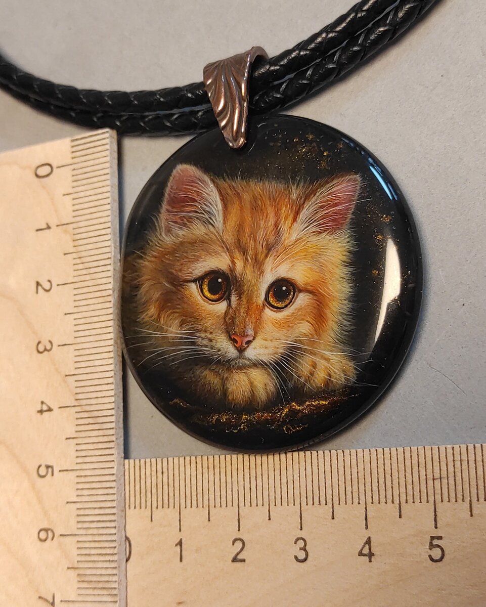 Приветствую Вас мои дорогие друзья, уважаемые подписчики и гости моего канала! Знакомьтесь – Бублик, он же Рыжик, он же Солнышко, он же Глазастик, Пушистик и просто Чудо. Яркий малыш с золотыми глазами. Как было не написать этого милашку. Камешек подобрала, почти круглый и почти черный агат. Размером 5 на 5 см. Только чуть-чуть кое-где подтонировала золотом, в тон глазкам. Посмотрите, как переливаются, играют блики. А для полноты картины - масса фотографий на разных фонах и под разным освещением, чтобы лучше передать оттенки росписи. Начну с обзора с разных сторон. Оборот камня оставлен без изменений. Цветные подложки всегда немного меняют восприятие оттенков. --- Оформлением для кулона стал двойной витой кожаный шнур длиной 50 см, плюс удлинительная цепочка 9 см. Мне такой вариант по душе, потому что можно корректировать длину. Кулон достаточно крупный и яркий.⠀ ⠀ ----- ❗ Рыжик пока в наличии, ждет, когда его увидит самая лучшая мамочка.⠀ Хотите приобрести себе или близким?