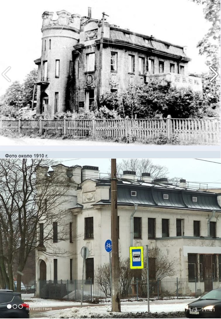 Этот старинный особняк, похожий на маленький замок, на проспекте Тореза, 8, всегда привлекал моё внимание своим видом. А про его историю я уже упоминала в предыдущих статьях, ссылки на которые ниже: Но мне всегда хотелось посмотреть, как же он выглядит изнутри. Несмотря на то, что в здании после революции располагались общественные заведения (сначала работала начальная школа, а в 1931 году в особняк переехала районная библиотека имени А.С. Серафимовича, которая существовала там до 1967 года и работала даже в блокаду), фотографий интерьера не сохранилось. Лишь на одном краеведческом сайте мне удалось найти его описание: "Изначально помещения внутри особняка располагались анфиладами: на 1-ом этаже – гостиная, комната отдыха для гостей, кабинет, кухня с подсобным помещением и два санузла, на 2-ом этаже – спальни для хозяев и гостей, рекреация с выходом на балкон веранды, ванная, санузел. В его описании 1914 г. упоминается: «...особняк крыт железом, оштукатурен снаружи и внутри. Полы па