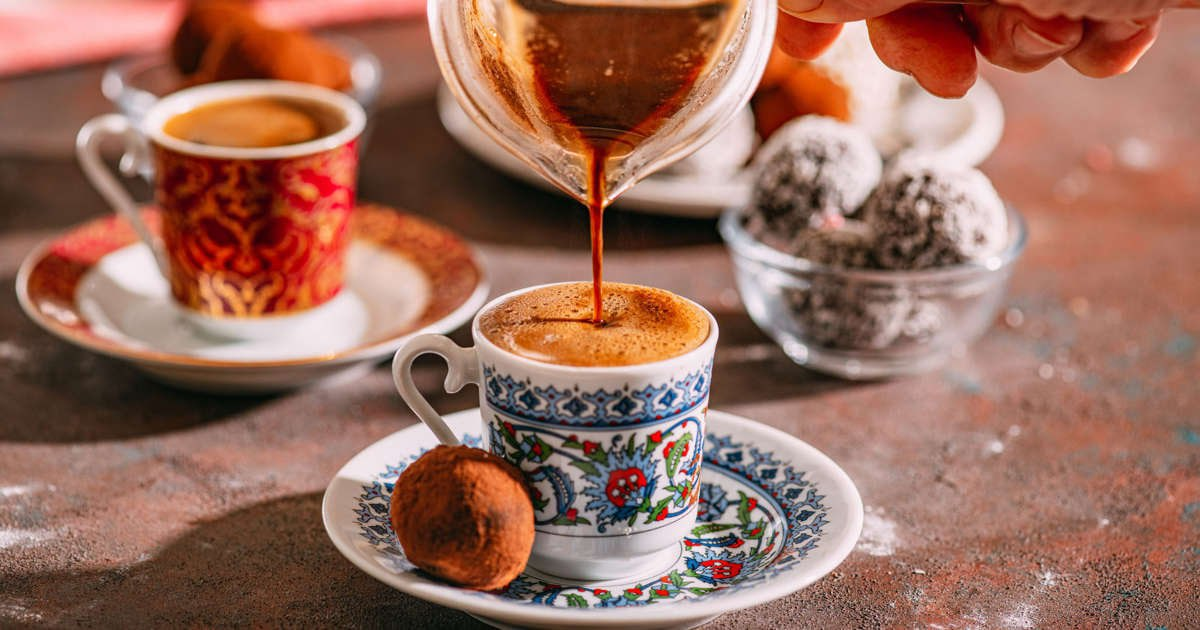 Многие называют этот напиток "турецкий кофе", но я бы сразу оговорилась, что говоря так, можно ввести людей в заблуждение, потому что "по-турецки" - это не сами кофейные зерна, а способ приготовления напитка. С давних времен турки варили кофе в специальной посуде - "турке" (думаю не надо объяснять, откуда она получила свое название), которую ставили на раскаленный от костра песок и регулировали температуру, пододвигая турку ближе или дальше к огню. Для напитка использовался кофе мельчайшего помола, небольшое количество воды и иногда сахара, а лучшими турками (кстати, правильное название турок - джезве или ибрик) считались медные. Считается, что у этого кофе особо насыщенный и ароматный вкус, который полюбился во всем мира, а на Ближнем Востоке кофе "по-турецки" считается самым популярным горячим напитком, даже более популярным, чем чай. При правильном приготовлении кофе по-турецки отличается плотным темным цветом, густой пенкой на поверхности, однородной консистенцией и выразительным