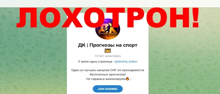 @dmitriy_kislov Техническая часть: ДК прогнозы на спорт – это канал в телеграмме, где публикуются прогнозы на любые спортивные события. Канал считается одним из лучших в СНГ, проходимость прогнозов очень высокая. Здесь никто не гадает, только анализируют. Проект на канале расположился удачно, можно для друзей оставлять ссылку. Он открыт, не анонимный, а подписано 15 тысяч человек. Каждый день количество подписчиков увеличивается. Дмитрий Кислов (аббревиатура названия канала оттуда) много лет занимается прогнозами ставок на спорт. Он может предугадать самый популярный исход, предложить поставить только на ту команду, которая реально выиграет. С ним еще ни один подписчик не уходил в минус. Он утверждает, что работает в рамках