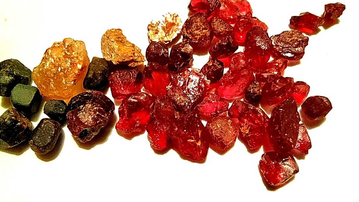 Г Р У П П А Г Р А Н А Т О В ♦️ ️ПИРАЛЬСПИТЫ ✅ ️Пироп— от греч. «пиропос» — подобный огню (из-за красного цвета). Цвет тёмно-красный. Находится в ультраосновных породах, богатых магнием, и продуктах их разрушения. Характерен для алмазоносных пород ЮАР и Якутии. ▪️ Родолит - разновидность пиропа розового цвета. В 1959 году по настоянию американского минералога Б. Андерсона родолит был выделен в отдельную разновидность минерала. ✅️ Альмандин — по названию местности — Аламанда (Малая Азия). Цвет красный, коричневый, фиолетовый. Самый распространённый из гранатов. Обычен в кристаллических сланцах и гнейсах.(не имеет разновидностей) ✅️ Спессартин — по названию Шпессарт (Бавария, Германия). Цвет розовый, красный, желтовато-бурый. Встречается в пегматитах и кристаллических сланцах (Восточная Сибирь, Карелия). (не имеет разновидностей) ♦️УГРАНДИТЫ ✅️ Гроссуляр — от лат. grossularia — крыжовник (из-за сходства с плодами крыжовника). Редкий вид граната с зеленоватыми, желтоватыми, ме