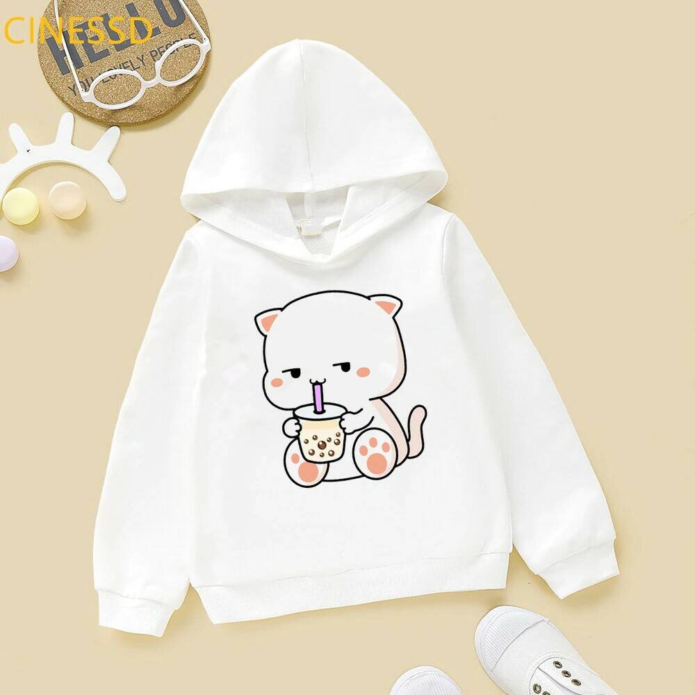 милый свитшот с рисунком кота, любви, бобы, топ на зиму и весну, детская одежда, белая детская флисовая одежда для мальчиков и для девочек