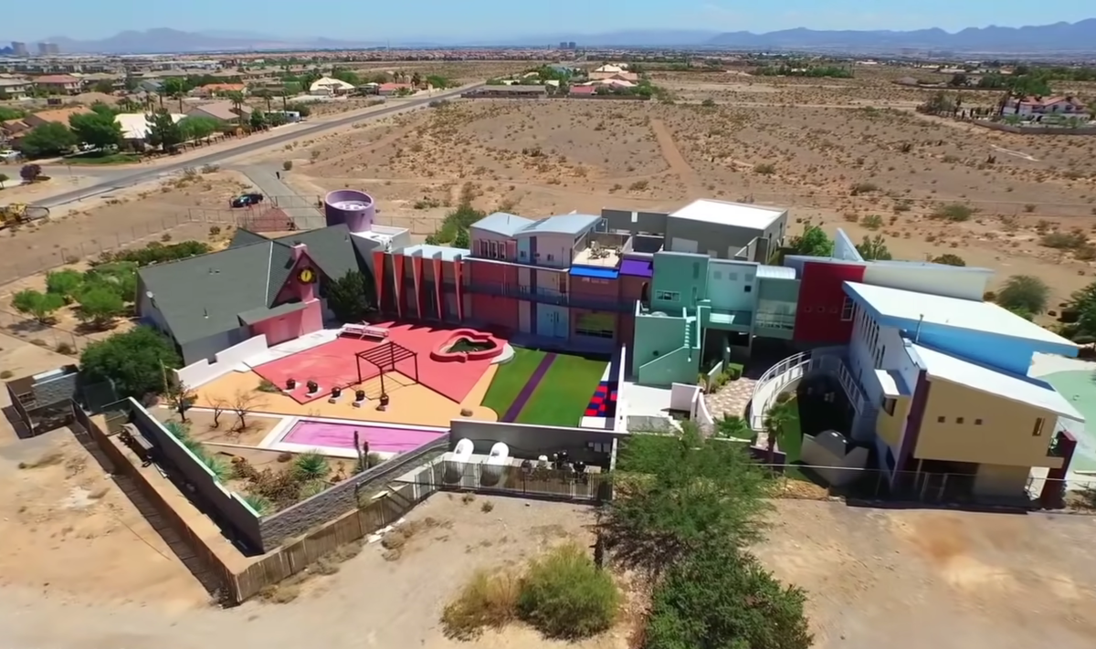 Так бывает: строишь себе дом, строишь, вкладываешься, не жалеешь средств, нанимаешь дорогого проектировщика, дизайнера... И вдруг решаешь его продать. И оказывается, что покупателя найти не так-то просто на дом ТВОЕЙ мечты. Потому что мечта у каждого - СВОЯ. Тюряга Этот дом принадлежит фокуснику Пенну Фрейзеру Джиллетту и находится в Лас-Вегасе посреди пустыни Махаба. Иллюзионист специально скупил 10 акров земли, чтобы его дом не окружали соседи. Сам дом весьма эксцентричен: цветовая гамма «вырви глаз», архитектура разных стилей, разноцветная лужайка — не каждый захочет поселиться в таком многообразии форм и цветов. Постепенно дом прирастал площадями: появилось 7 спален, 8 ванных, 2 кухни, а по периметру - ограждение из сетки. Владельцу очень нравилась его крепость, однако, дети были против такого отшельнического заключения. Когда Пенн решил продать свою тюрягу — желающих пришлось ждать целых 20 лет! Слишком уж эксцентричным было жилище. В результате дом с участком был продан за $1 8