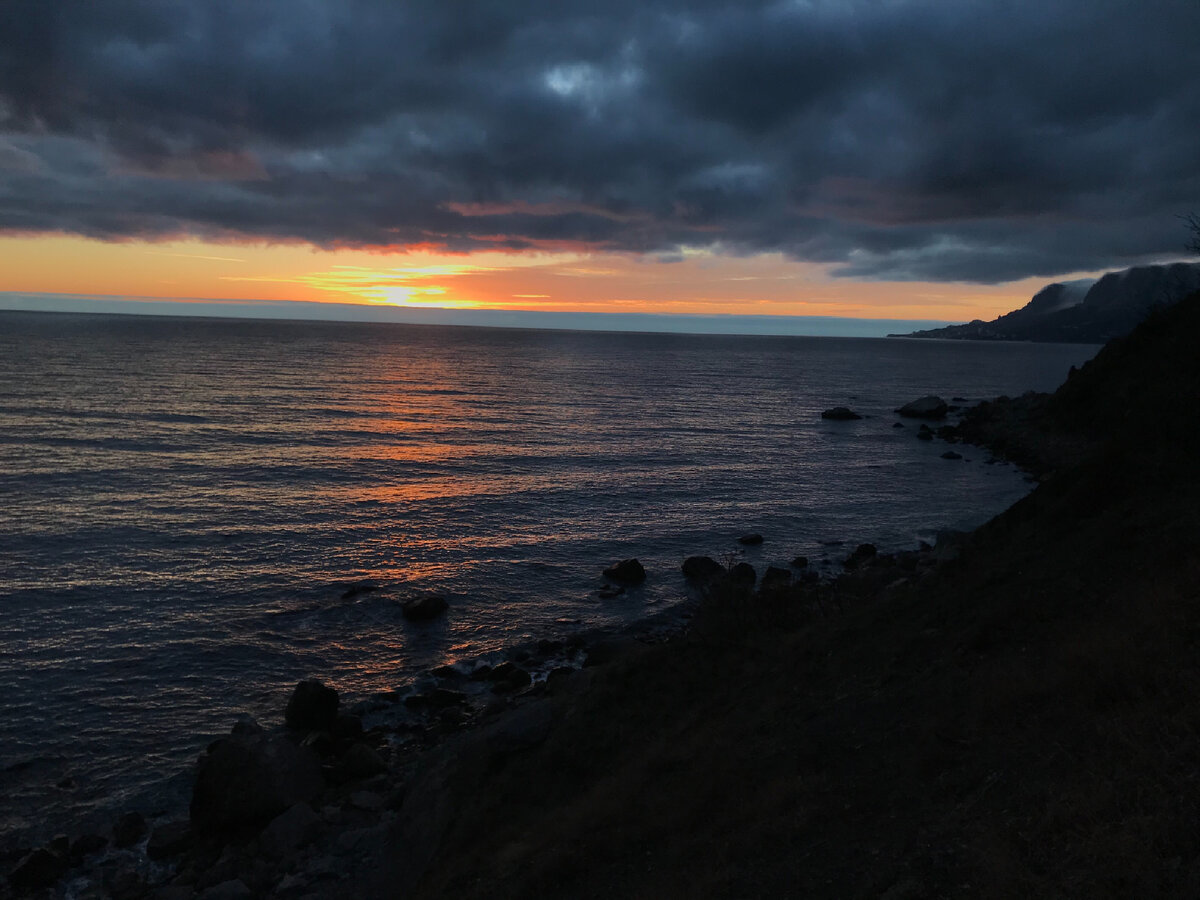 1-я часть статьи здесь: Остаюсь на вторую зимовку в палатке у моря в Крым. На этот раз иду по южному берегу Крыма, начиная из Севастополя в Ялту и далее в Алушту. Иду не спеша, стараюсь проехать на велосипеде и пройти в бухты, пляжи и дикие места. Буду показывать вам красоты южного берега Крым. А то ведь скоро все будет все застроенно и окутано в бетон. Вечером я решил поехать к мысу Айя, где прошлой зимой зимовал. Приснился меня кот буржуй, как бы в беде и поэтому думая, что ему требуется помощь, поехал. Да и охота было посмотреть на эти места, сравнить с местами юбк, где я уже побыл и пожил. Загрузил в рюкзак Еду, хлеб, взял литровую бутылку чая. А после 5 часов пошёл наверх. Зашёл в магазин, купил два кирпичика хлеба на всякий случай. Автобус из Ялты пришлось ждать около часа, даже успел помёрзнуть на ветру. И только в седьмом часу смог уехать. Приехал в Ласпи, перешел дорогу и пошёл по дороге вниз в турецкую поляну. По этой дороге в прошлую зиму столько раз я уже проходил, чт