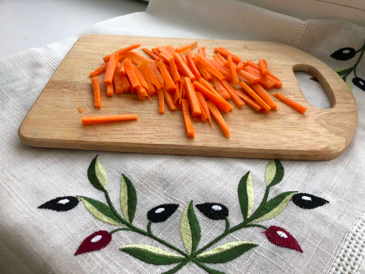 Возьмите много лука, белого или красного, морковь, чеснок, приправы – молотый перец, зира и барбарис, соль, вода. Огорчим любителей «приправ из пакетика» «Для шашлыка», «Для плова» и т. д. Эти «кулинарные изыски» придадут вашему блюду неприятный запах, усиленный химическими добавками, так что настоятельно рекомендую от них отказаться и покупать свежесмолотые приправы на ближайшем рынке. Наступает момент колдовства. Выбираем самую подходящую посуду для приготовления плова – казан или сотейник с высокими бортами. За неимением таковых можем обойтись глубокой сковородой. Мясо режем нетолстыми брусочками и бросаем в хорошо разогретый сотейник. Если оно недостаточно жирное, добавим немного растительного масла. Пару минут обжариваем на сильном огне, хорошо помешивая. Это нужно для того, чтобы поверхность каждого кусочка «схватилась» и не выпускала сок. Затем огонь убавляем. Пока мясо жарится, чистим и режем равное количество репчатого лука и моркови, по соотношению к количеству мяса один к о