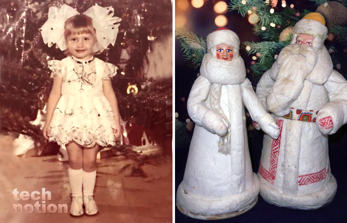 В каждом доме под новогодней елкой стояли фигурки Деда Мороза и Снегурочки. Они были совершенно разными: ватными, из папье-маше и пластмассы. Размеры тоже были на любой вкус: у мастеров можно были купить как совсем небольшие статуэтки, так и огромные, 40-50 сантиметров в высоту.