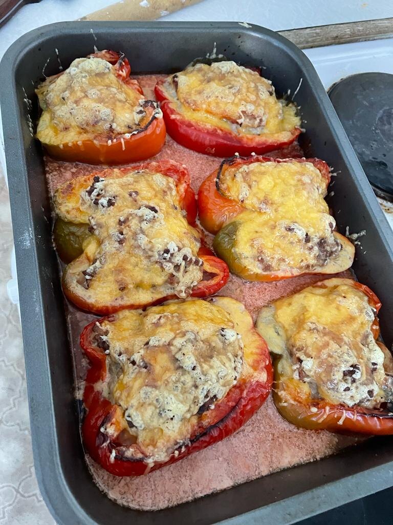 Фаршированные перцы Ингредиенты: Готовим фарш из говядины и курицы. Добавляем яйцо, хлеб, мелко нарезанный лук и чеснок, соль, специи. Разрезаем перцы на половины, вычищаем сердцевину, наполняем фаршем. Обжариваем лук с морковью, добавляем воду и томатную пасту. Специи по вкусу. В форму для запекания выкладываем перцы и заливаем форму подготовленным соусом из лука и моркови. Отправляем в разогретую на 180-200 градусов духовку на 40-50 минут За 5-10 минут до готовности посыпаем тёртым сыром. Подписывайтесь и пишите коментарии с вашими любимыми рецептами!