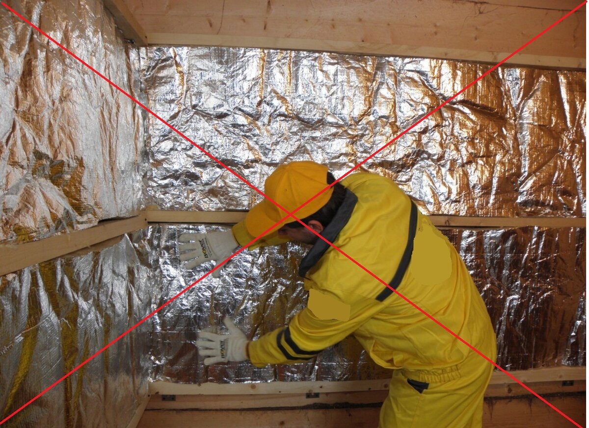 Также стоит помнить, что на фольге постоянно будет скапливаться конденсат, который неизбежно приведет к порче отделки и появлению грибка. Избежать этого можно при помощи воздушного зазора между фольгой и стенкой.
