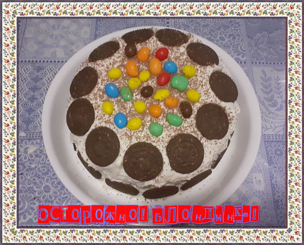 Если вы хотите удивить гостей, особенно детско-юношеского возраста, попробуйте приготовить такой интересный и красивый тортик. Вам понадобятся такие продукты: Для теста: Для крема: Для декора и прочего: Приготовление: Яйца взбить с сахаром, добавить ванильный сахар. Добавить муку и разрыхлитель теста. Тесто переложить в прогретую мультиварку и включить режим "Выпечка" на 1ч 10 мин. Получится вот такой корж, который следует потом разрезать на 4 коржа. Я верхушку и низ вообще срезала и убрала - для того, чтобы торт равномерно пропитался и не было сухих коржей. Для приготовления крема нужно взбить сливки и сгущенное молоко до крутых пиков. Добавить кокосовую стружку. Теперь собираем торт. Далее украшаем торт печеньем и цветным шоколадным драже. Можно сверху посыпать шоколадом. Торту необходимо настояться в холодильнике не менее 12 часов. Приятного аппетита! Не рекомендую уходить без подписки. Подпишитесь. Трудно вам, что ли?