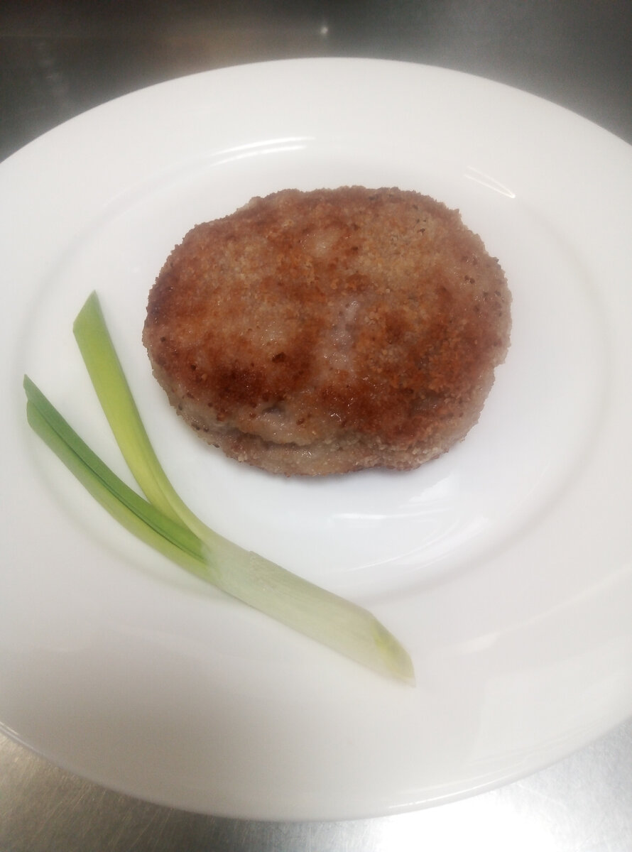 Нам понадобится следующие продукты. Соль, перец, панировочные сухари. Лук нарежем перьями и обжарим на сковороде до лёгкого золотистого цвета. С хлеба срезаем корки и замачиваем в молоке. Жаренный лук остужаем и смешиваем с хлебом. Теперь через мясорубку прокручиваем хлебно-луковую смесь два раза. Прокручиваем мясо, предварительно обработав его от жил. Жирок срезать не будем, так котлеты будут сочнее. Солим и перчим фарш по вкусу Тщательно перемешиваем смесь и жарим маленькую котлету на пробу. Если всё вкусно, то начинаем панировать и формовать котлетки. Обжариваем котлеты на сковороде до золотого цвета и доготавливаем в духовке при температуре 180 градусов. 15 минут. Гарнир выберите сами. Приятного аппетита!