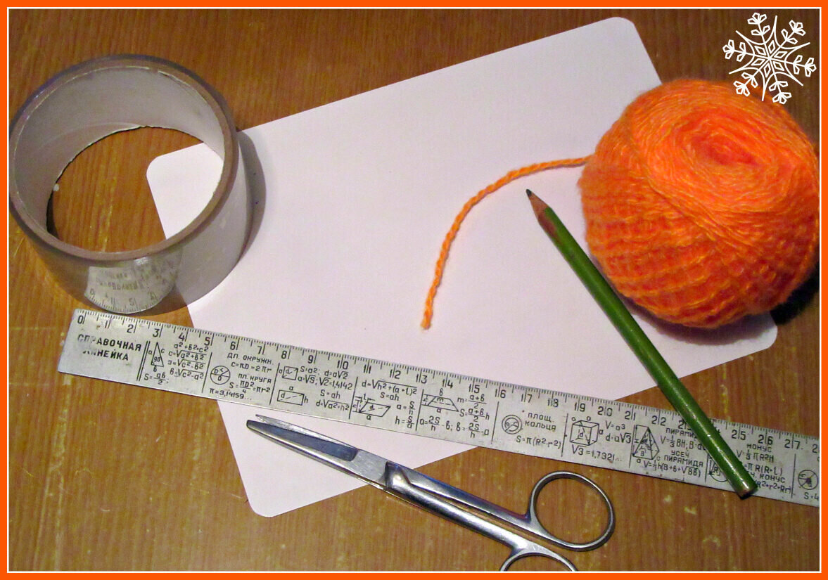 Новый год не за горами, многие уже начинают подготовку, создавая праздничное настроение себе и окружающим. Не останусь в стороне и я))) Несу сюда, на страничку, простенькую-лёгонькую ёлочную игрушку. Идея взята из сети, но изготовление и подробное описание - моё. Готовила этот #мастер-класс в прошлом году для публикации на служебной страничке, но сейчас он и здесь пригодится. Кстати, получившуюся игрушку можно не только повесить на ёлку, но и использовать для оформления упаковки подарка, для настольной композиции, для... другие варианты вы можете придумать сами))) Можно просто подарить кому-то в качестве символического сувенира - чтобы у человека улучшилось настроение и захотелось улыбнуться. Необходимые инструменты и материалы: Сначала нам нужно вырезать из картона полоску длиной 10 сантиметров и шириной полтора сантиметра, замкнуть её в колечко и склеить края. Я использовала скотч - это быстрее (не надо ждать, пока клей схватится), да и прочнее. Затем нужно нарезать нити длиной 25