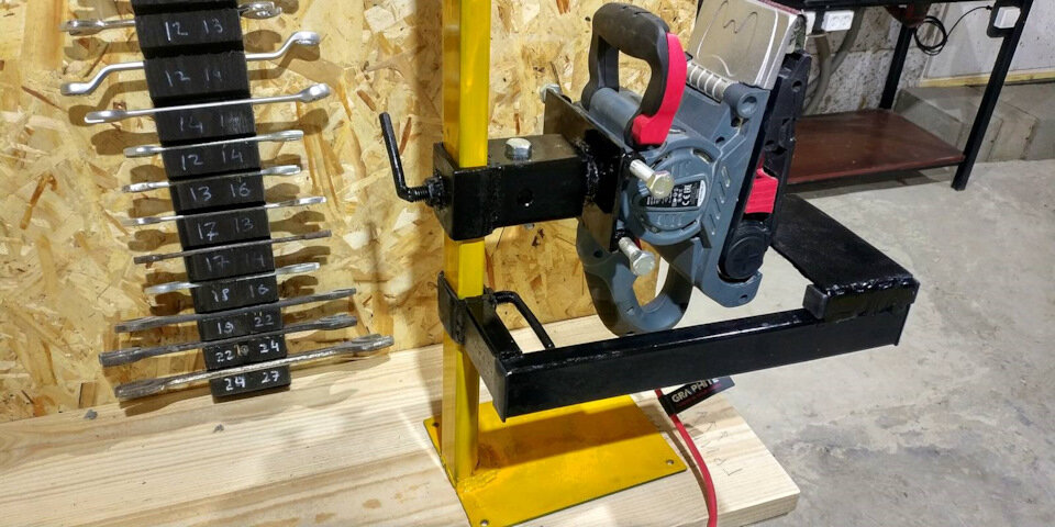Давно хотел такой инструмент себе, даже шлифмашинку купил, чтобы когда-нибудь из нее реализовать мини гриндер. По итогу, прошло два года и только теперь я смог сделать гриндер из ленточной шлифовальной машинки.Место для него я как рас заранее оставил, подробнее здесь — www.drive2.ru/c/604629141769160459/ Вот так около торцовки на дополнительной столешнице будет жить гриндер. Именно плечо для столика сделано слева, т.к. справа будет система пылеудаления. Ссылка на ленточную шлифовальную машину GRAPHITE 59G392 — saransk.vseinstrumenti.ru…ntochnye/graphite/59g392/ Сама машинка одна из самых недорогих с хорошими отзывами. Крепежную площадку сделал из металлической пластины толщиной 3мм и приварил гайки напротив входных отверстий сверху. По итогу все состоит из 4 деталей, стойка полностью разборная. Болты М6 держат машинку. Почему М6? потому что у них достаточно большие гайки, чтобы не делать проставки между пластиной и гаечкой. Спасибо за внимание!