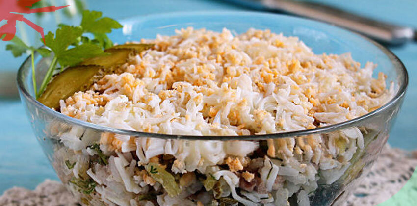Ингредиенты: Сливаем масло в отдельную миску. Саму печень трески перекладываем в тарелку и разминаем. Отвариваем рис в большом количестве воды. Сливаем воду и хорошо промываем рис. Он должен быть рассыпчатым. Затем отвариваем яйца вкрутую. Остужаем, очищаем от скорлупы. Яйца трем на терке. Маринованные огурцы натираем на крупной терке. Зелень промываем, просушиваем и измельчаем. Берем миску, смешиваем печень трески, рис, зелень, яйца, огурцы. Заправляем маслом, в котором находилась печень. Сверху посыпаем остатками яиц. Блюдо готово. Приятного аппетита! Источник: https://wildcrab.ru/news?id=1384