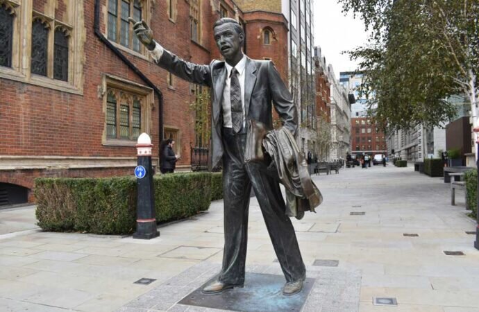 Все, что ему нужно, – это такси. Необычная скульптура на улице Джона Карпентера так и называется – «Такси». Расположилась она у вокзала Блэкфрайерс в 2014 году. Вообще памятник был создан в 1983-м и стоял в Нью-Йорке на Парк-авеню. Он был полностью окрашен и настолько напоминал живого человека, что пугал нью-йоркских таксистов. Мало того, говорят, во время теракта 11 сентября пожарные пытались спасти его, полагая, что это настоящий мужчина. Когда скульптура перекочевала в Лондон, на ней оставили только белую рубашку.