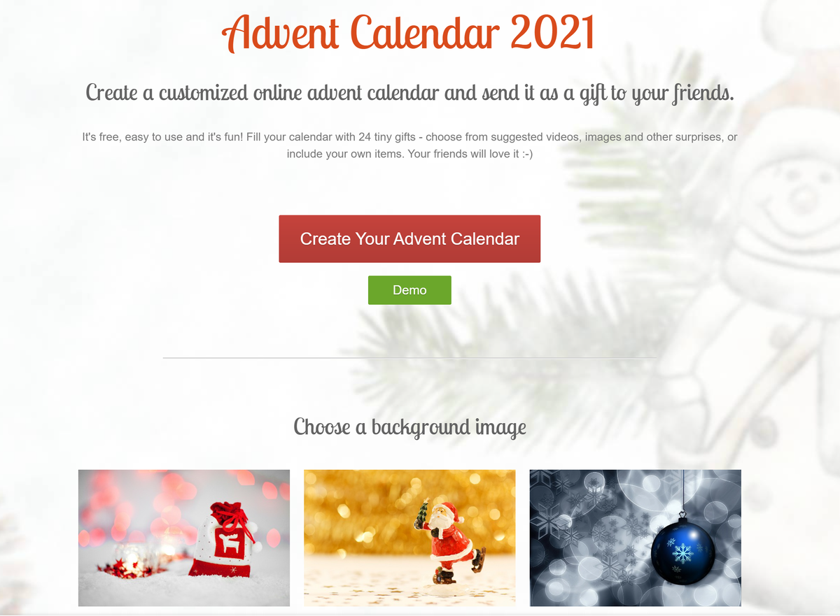 Календарь обратного отсчета отслеживает время до прихода Рождества. Владелец календаря может открывать одну дверь в день, вплоть до Рождества (24 декабря) или Рождества (25 декабря). По традиции это открытка или картонный домик с окошками, открывая которые ежедневно, находишь внутри сюрпризы в виде конфет, шоколадок, записок с пожеланиями, а также другие подарки. Календари бывают и в виде мешочков, пакетиков, сумочек или свёртков, развешанных на ленте. А можно сделать свой онлайновый Адвент-календарь обратного отсчета и дать на него ссылку. В таком календаре на каждый день можно разместить, например, забавные мультфильмы с любимыми героями вашего ребёнка, интересные задания, ссылки на онлайн-игры, загадки, кроссворды, головоломки, интересные факты из книг о Деде Морозе, новогодние стихи и сказки и многое другое. В конце страницы есть ссылка на готовый Новогодний календарь "Украшаем елку самодельными игрушками" с небольшими мастер-классами по созданию елочных игрушек с детьми. Ссылку