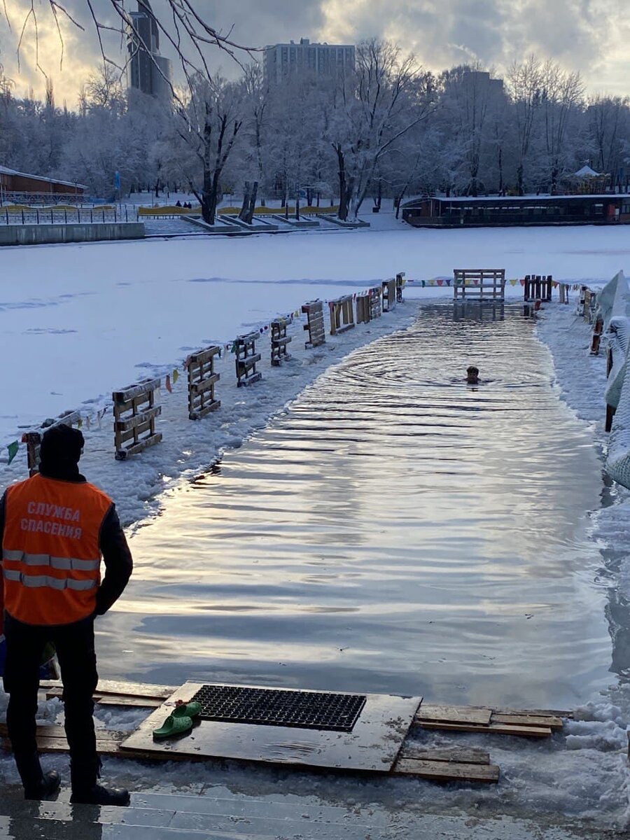 Но я никогда не видела, чтобы вот так вот в ледяной воде, без гидрокостюма, кто-то спокойно плавал 15 минут. Я даже смотреть на эту женщину замерзла. Потом я увидела, что у нее все-таки были перчатки и типа носков от гидрокостюма на ногах, но не думаю, что они ее сильно согревали. Когда дама закончила, она сказала, что плавает обычно по 200 метров. Двести метров в ледяной воде! Наш народ непобедим. Ну, по крайней мере, женщины точно.