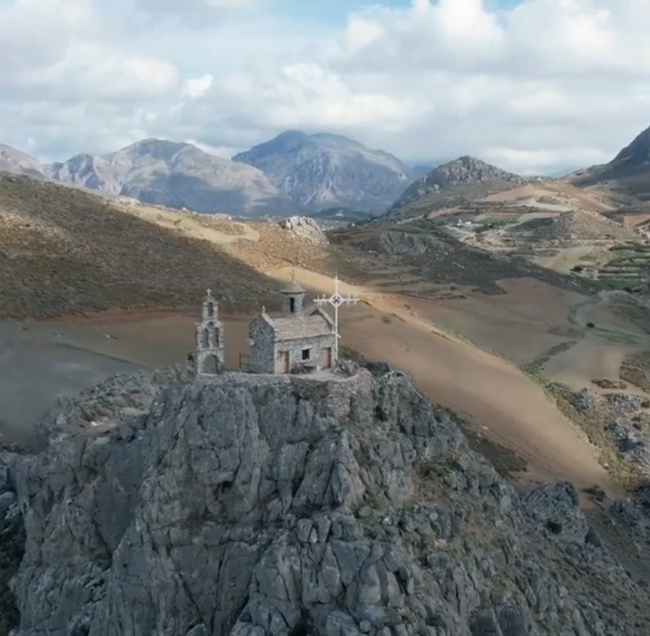Храм Святого Паисия поблизости от Дамнони (35 км от Ретимно, 6 км от Плакиаса) выстроен на высоченной горе. Но он не похож на «гнездо орла» – скорее на «Ласточкино гнездо», поскольку сверху, с дрона, кажется легким и узорным.