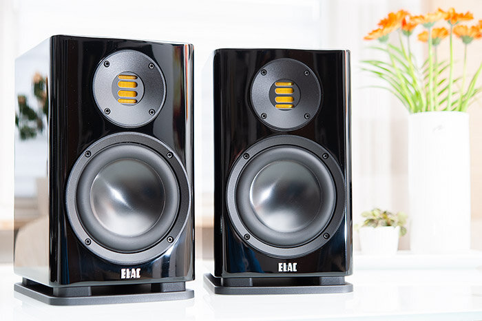 Установленный здесь твитер JET 5 выполнен на основе базовой концепции AMT (Air Motion Transformer) известного инженера-акустика Оскара Хейла. Технология AMT была значительно оптимизирована специалистами ELAC и сейчас представлена в пятом поколении. В нашей серии видеороликов, снятых на месте сборки ELAC в Киле, мы подробно остановились на этом вопросе. ВЧ-динамик JET полностью изготавливается вручную на заводе в Киле, а в его основе лежит сложенная гармошкой мембрана из фольги, которая приводится в движение сильным магнитным полем. Считается, что эта система колеблет воздух быстрее, чем поршневой ход обычного динамика с диффузором, что обеспечивает молниеносный отклик на импульс и широкий динамический диапазон при минимальных искажениях. В результате также повышается эффективность электроакустического преобразования, и, следовательно, звуковое давление, а частотная характеристика может простираться далее 50 кГц.