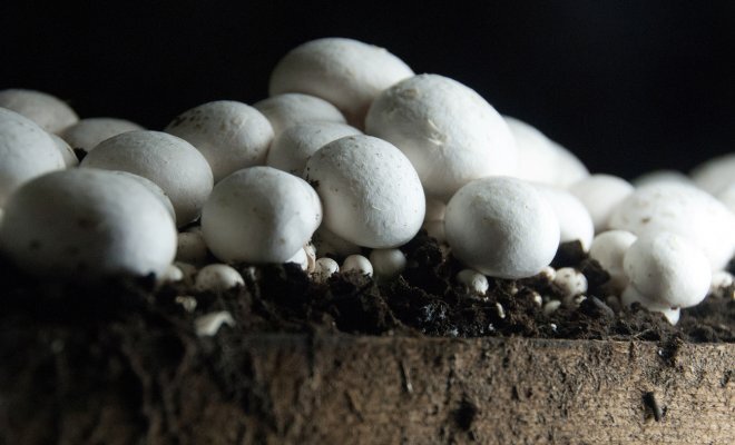Если процесс идет нормально, через 7-14 дней появятся белые паутинистые грибные нити – сперва вокруг высаженного мицелия, а затем и на поверхности субстрата. Их нужно засыпать влажной смесью из торфа, известняка и земли (в пропорции 5:1:4) и подождать еще 3-5 дней. После этого следует понизить температуру в помещении до 12-17°C и ждать урожая.