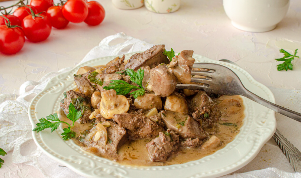 6. Выливаем этот соус в сковородку с печенью и даём немножко потушиться.