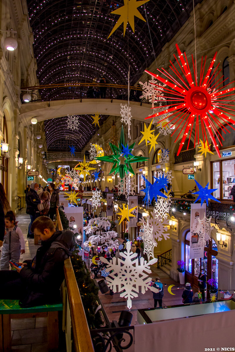 Ежегодно Главный Универсальный магазин страны украшают к Новогодним праздникам. Не стал исключением и этот год. Каждый год можно увидеть новые декорации. Пусть мне и кажется, что год от года украшений становится меньше и они выглядят проще, ощущение праздника все равно присутствует. В ГУМе всегда звучит музыка, обычно это старые песни, которые возвращают мысленно в детство и появляется то самое чувство беззаботной радости. В зимнее время в ГУМе особенно многолюдно. Сотни елок в дизайнерских "нарядах" ежегодно украшают первый этаж магазина. От традиционных до креативных. И конечно же, самая большая елка, находится в центре, на месте фонтана. Вокруг нее разместилась ярмарка-продажа елочных игрушек: стеклянные, ватные, игрушки ручной работы. Символом 2022 года по восточному календарю будет Тигр - по этому случаю игрушки тигры в наличии различных форм и размеров. Вот таким получился этот обзор. Приходите в ГУМ за новогодним настроением! Буду рада всем вашим ♥.