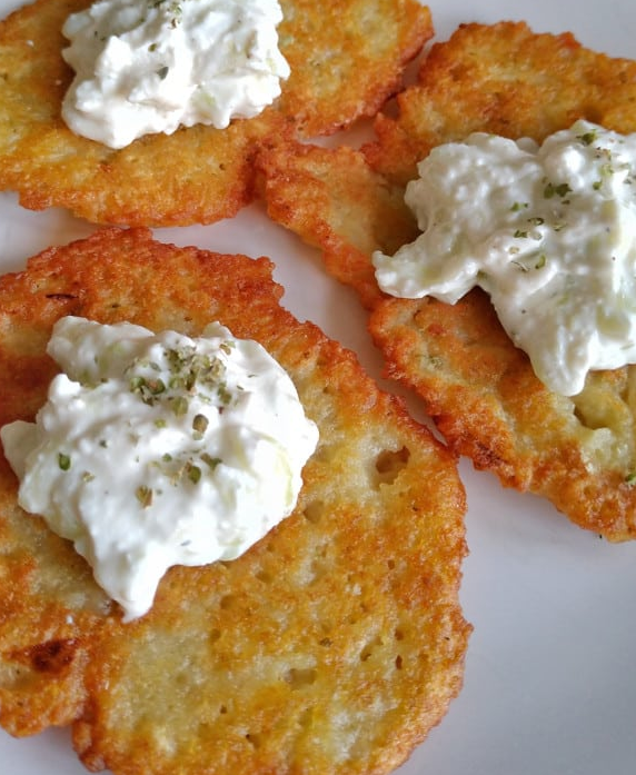 Рецепт очень хрустящих картофельных оладий из тертого сырого картофеля. Его очень легко приготовить, даже новички на кухне должны справиться с этим блюдом без проблем. Благодаря специальным добавкам блины станут вкусным и полезным блюдом. Для приготовления варминских блинов под названием слива и соуса под названием помочка нам понадобятся перечисленные ниже ингредиенты. Рецепт приготовления: первая версия: - огурец, чеснок вторая версия для сладкого: -мед Приготовление картофельных оладий Мелко натрите картофель и лук. Если у вас дома есть медленная соковыжималка, вы можете использовать ее для более быстрого приготовления продуктов. Добавьте ко всему чашку муки и яйцо и перемешайте. В конце приправьте солью, перцем и сушеным майораном. Обжарьте в масле до золотисто-коричневого цвета с обеих сторон. Пока блины жарятся, приготовьте помело. Первый вариант: Очищенный огурец натрите на крупной терке в миску и добавьте соль. Примерно через 5 минут слейте воду с огурца и добавьте в миску 4-5