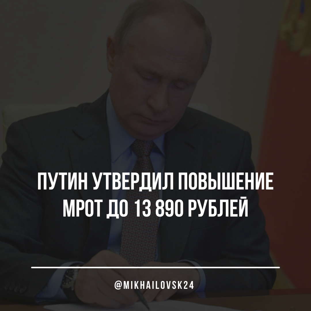 «Установить минимальный размер оплаты труда с 1 января 2022 года в сумме 13 890 рублей в месяц», — говорится в указе.