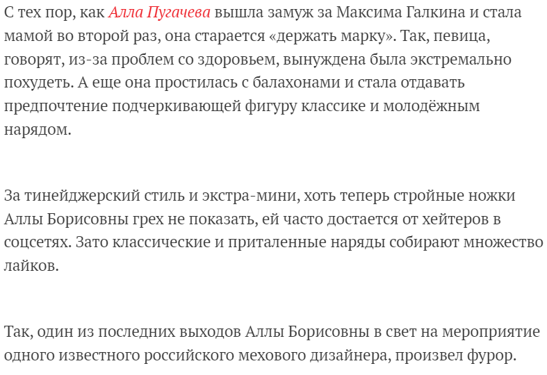 Здравствуйте, дорогие читатели. Рада приветствовать всех на моём канале, благодарю вас за лайки и комментарии, которые оставляете под моими статьями. Сегодня я хочу рассказать о новом аутфите Аллы Пугачевой. Приятного прочтения.