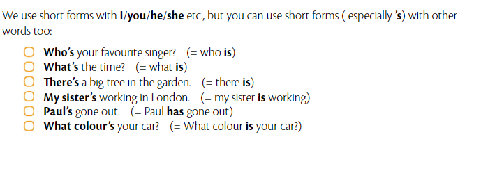 Времена в английском. Present. Unit1. Am/Is/Are. Короткая форма. Rule3