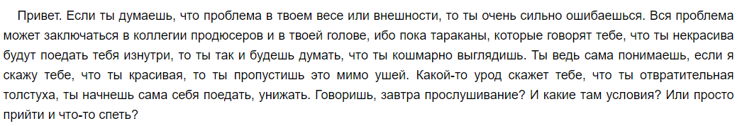 Привет. Если ты думаешь, что проблема в твоем весе или внешности, то ты очень сильно ошибаешься