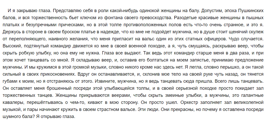 И я закрываю глаза. Представляю себя в роли какой-нибудь одинокой женщины на балу