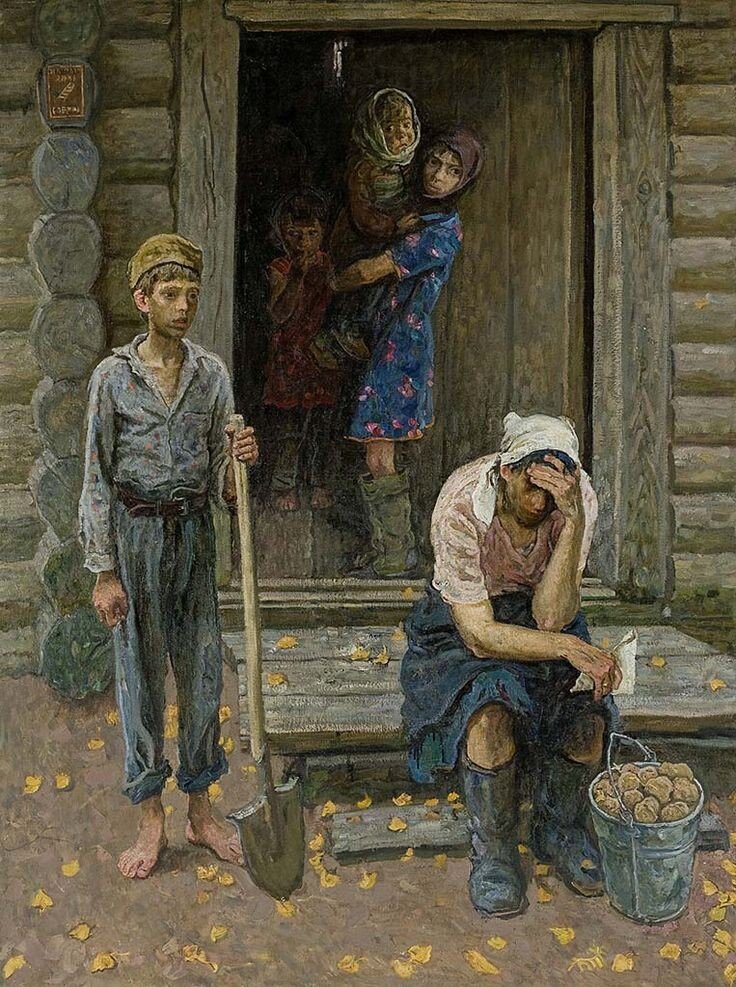 Уйдя из дома, Петро сразу же решил идти в военкомат. Зайдя в небольшой дом, он подошел к двери одной из комнат и постучал: - Здравствуйте! Можно? Робко спросил парень. - Можно! Заходи. Ты по какому вопросу? Спрашивает серьезный, на вид лет сорока, темно русый, худой мужчина. - Я хочу на войну - немцев бить! С порога громко заявил Петр. - Немцев говоришь, бить хочешь? -Да! - А сколько тебе лет? Спрашивает командир. -Четырнадцать! - В четырнадцать мы тебя принять не можем. Приходи через год, тогда и поговорим Заявил мужчина. - Я не могу ждать год. А побыстрее нельзя? Разочаровался Петр. - Нет, побыстрее нельзя! С горьким видом Петр пошел домой, но одно его подбадривало - он через год будет немцев бить! Пришел Петр домой, рассказал все матери и решил, что год он подождет. Пока будет в поле работать и за братьями и сестрами смотреть. Прошел год, и Петру пришла повестка на фронт. Как же юноша обрадовался! Парень быстро собирал вещи и пошёл на призывной пункт. Еще тогда никто и не догадывае
