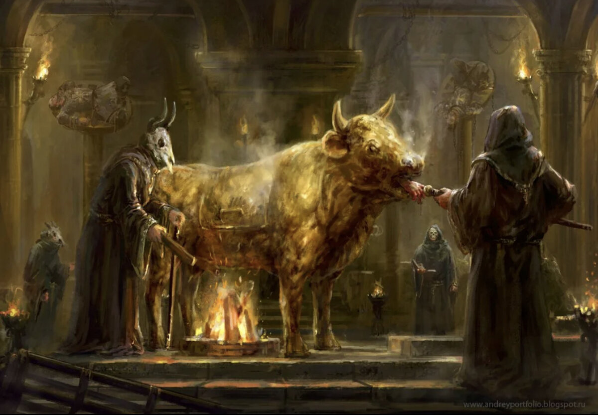 Медный бык — созданный греками, является одним из самых изощренных и жутких устройств для пыток. Рассказы об этом ужасном творении занимают место в истории Древней Греции наряду с легендами о воинской славе, преданной любви, аргонавтах и греческих богах. Что же это такое? Давайте узнаем подробнее. Медный бык или, как его еще называют «Бык Фаларида» – древнее орудие казни, применявшееся во второй половине 6 века до нашей эры. Создателем этого устройства считается медник из Афин по имени Перилай. Заказ на изготовление огромного медного изваяния поступил к нему от сицилийского тирана Акраганта Фалариса. Фаларис прославился как один из самых жестоких правителей в истории. В частности, такую репутацию он заработал именно благодаря медному быку. Кстати, первым, на ком он испробовал быка был его создатель Перилай. Мужчина рассказал Фалариду, что разработанная им внутренняя система труб «позволит слышать крики жертвы, словно нежное мелодичное мычание». Тогда заказчик захотел испытать эту уни