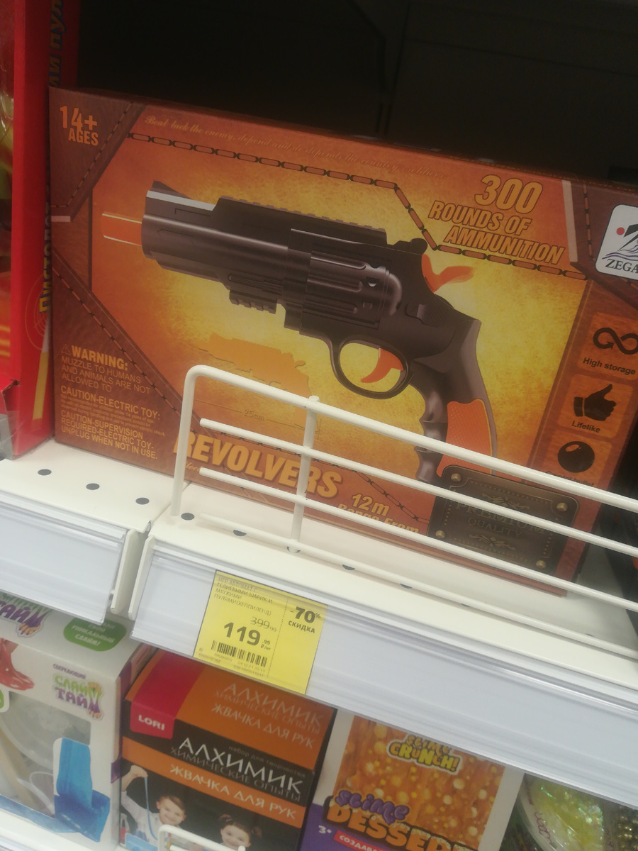 Самый главный вопрос повисший сейчас у всех в голове - что ложить под ёлку? Сейчас многие сразу выдохнут - увидев акции в магазине. Все фотографии сделаны лично автором С любовью для вас дорогие читатели и подписчики Для мальчишек увидела вот такой пистолет со скидкой 70%. А вот огромная пачка с пазлами из любимых мультфильмов всего за 32 руб. А для любителей липучек большие вариации со слаймами, готовые упаковки или наборы для создания. Яркая косметика для маленьких принцесс со скидкой 25%. Думаю не одна бы девчушка не отказалась увидеть у себя под ёлочкой такой приятный подарок Не зря говорят Готовь сани летом, а вот Зимой можно подготовить водные пистолеты со скидкой 70%. Развивающие игры по 41 рублю. Спасибо друзья за внимание.