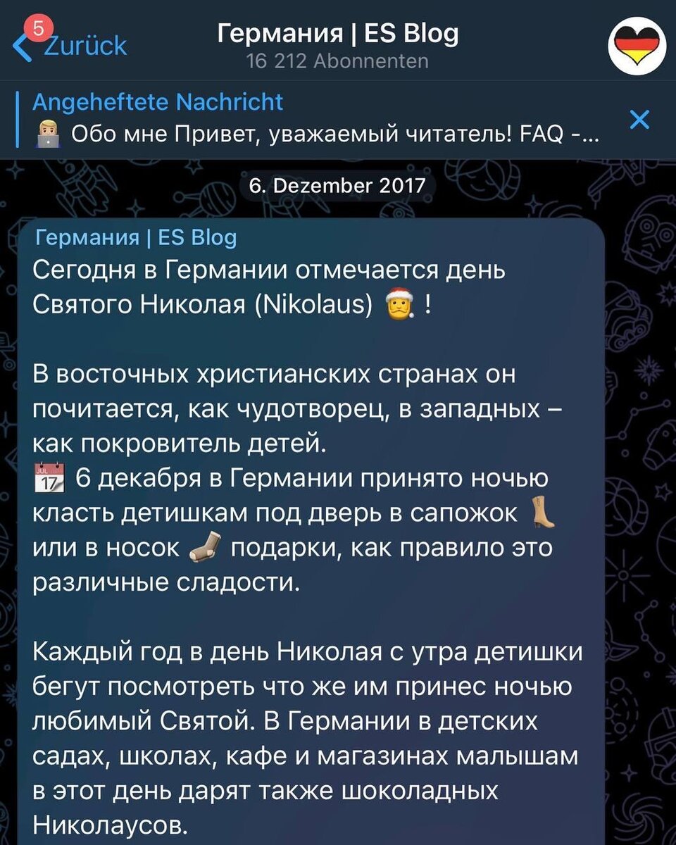 Шестого декабря 2017 года вечером я решил начать писать свои мысли и оформил все в это блог в Телеграм. Думал ли я, что приду к такому? Нет! Была идея просто делиться своими похождениями в Германии. Показать все как есть на самом деле… Я очень рад, что принял такое решение целых четыре года назад! Теперь блог вышел давно уже за рамки Телеграм и постоянно расширяет свои границы. Хочется сказать спасибо всем кто поддерживал с самого начала и делает это до сих пор! Каждое сообщение, когда вы пишите о том, что блог вам помог в чем то - придаёт желает писать дальше 👍🏼 ❤️ Спасибо вам большое! Всегда ваш, @es_blog Двигаемся только вперед 🚀 Блог о жизни в Германии я веду в телеграм :)Там вы можете и написать мне в личные сообщения или же пообщаться в нашем чате! Заходи - https://t.me/es_blog Так же всегда рад вам в уютном инстаграмчике - https://www.instagram.com/es_blogde Новое ВИДЕО каждую неделю на YouTube - https://youtube.com/ESBlog Ставь палец вверх и подписывайся на наш канал!