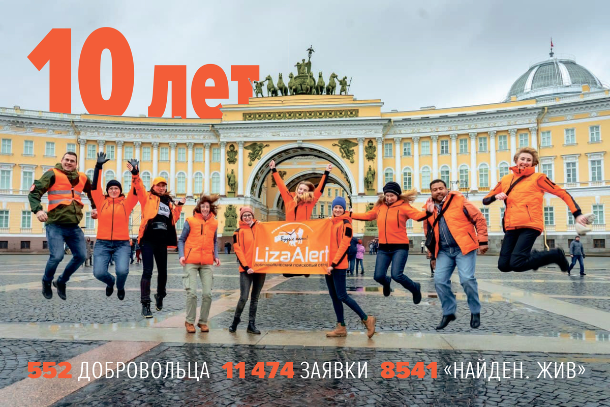 Сегодня петербургскому отряду «ЛизаАлерт» исполняется десять лет! Десять лет надежд, радостей, споров, слёз, ошибок, побед. Десять лет лесов, болот, полей, дорог, дворов, улиц. Десять лет поисков. Отряд – это люди. Это мы. Мы очень разные и совершенно обычные. Мы мечтаем, сдаём сессии, ходим в театр, катаемся на роликах и продираемся сквозь бурелом в поисках заблудившегося грибника. Мы встречаемся, расстаёмся, увольняемся, строим карьеру и распространяем ориентировки. Мы влюбляемся, женимся, рожаем детей, читаем сказки внукам и обзваниваем больницы в поисках потерявшегося. Мы пишем сказки, строим дома, учим школьников, заключаем сделки и ночи напролет ищем на улицах города чьего-то не вернувшегося домой дедушку. Мы наверняка никогда не встретились бы, если бы не отряд и большое хорошее дело, которое наполнило наши жизни особенным смыслом. С днём рождения, отряд! С праздником, соотрядники!