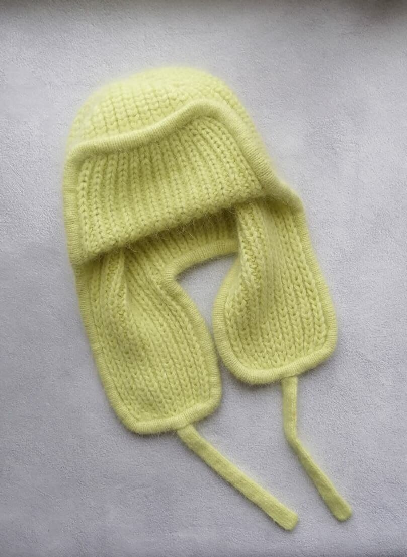 Материалы для работы Пряжа пух норки — 3 мотка Спицы № 4,5 и № 3 Крючок № 4,5 Внимание!!! Основное полотно вязать в 3 нити + 2 дополнительных спицами № 4,5 Обвязка в 2 основных нити без дополнительных спицами № 3 Узор Полупатентная резинка Поворотными рядами 1 ряд: 1 лиц, 1 изнаночная 2 ряд: 1 лицевая в петлю предыдущего ряда, 1 изнаночная Круговыми рядами: 1 ряд: 1 лицевая, 1 изнаночная 2 ряд: 1 лицевая, 1 изнаночная в петлю предыдущего ряда Козырек На спицы № 4,5 набрать 25 п. Далее в каждом ряду, начиная с 1-го, прибавлять по 1 петле с обеих сторон. Повторить 3 раза. Когда на спицах будет 31 петля, провязать еще 30 рядов, нить обрезать. Ухо Набрать 13 п. Далее, в каждом ряду прибавлять с обеих сторон по по 1 п. Повторить 4 раза. Когда на спицах будет 21 петля, провязать еще 42 ряда. Связать одно ухо — нить обрезать. Связать второе ухо — нить не обрезать. Затылочная часть Объединить петли ушей, при этом донабрать еще 15 петель для затылочной части (21 п. ухо, 15 п. затылок, 21 п. ухо