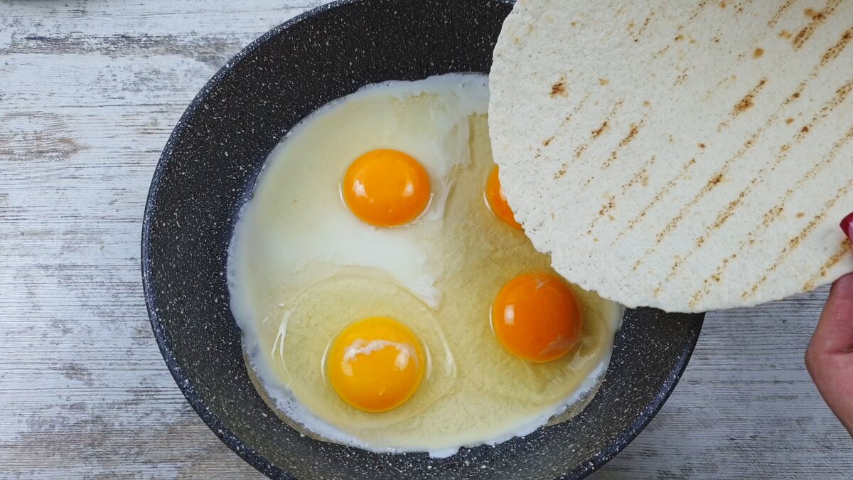 Потратила всего 10 минут на приготовление сытного завтрака из простых продуктов (4 яйца, лаваш и прочая, и прочая)