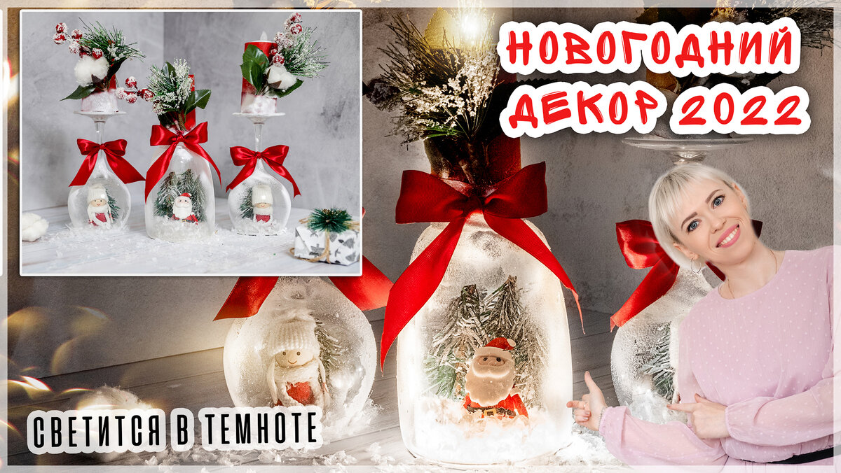 Новогодний декор из бокалов своими руками. Снежный шар и подсвечники. Всем привет.