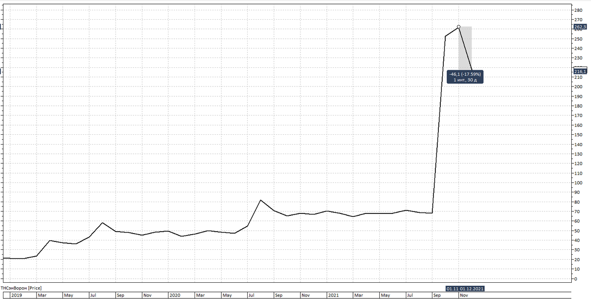 Название компании говорит само за себя, продажа электроэнергии. Сама компания не большая, всего 850 человек. Видимо на юга приходят холода, есть на чем расти и развиваться компании, но не долго, до весны. Итак, о чем же говорят нам графики?: График месяц: За ноябрь акции компании потеряли в цене 17%, после такого падения, выйти в лидеры роста на один день и будет коррекция, перед дальнейшим обвалом.