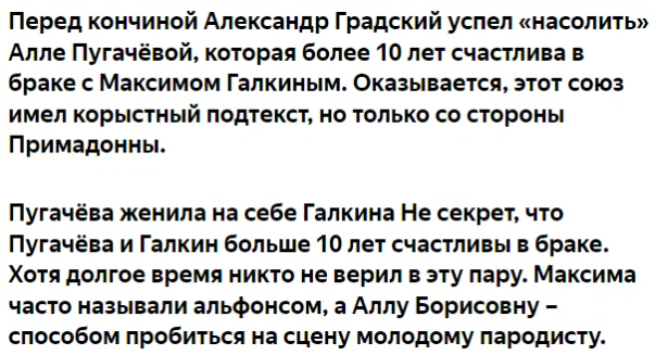 За 2 дня до ухода Градский успел "насолить" Алле Пугачёвой и Максиму Галкину. Зато правдиво.