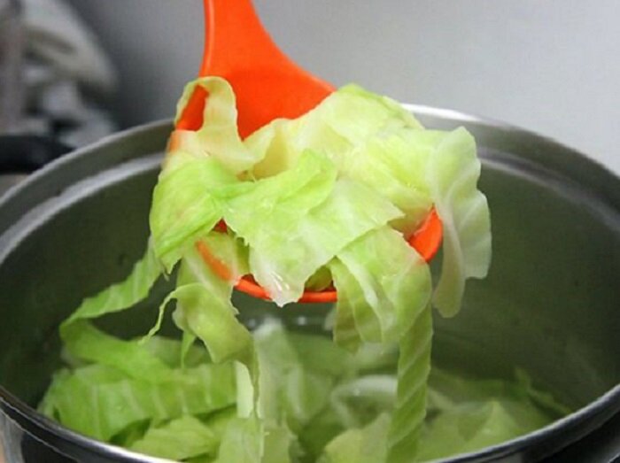 В холодную воду нужно положить ложку столовую соли и щепотку пищевой соды. Затем добавить нарезанную капусту и варить, не накрывая крышкой от 30 до 60 мин.