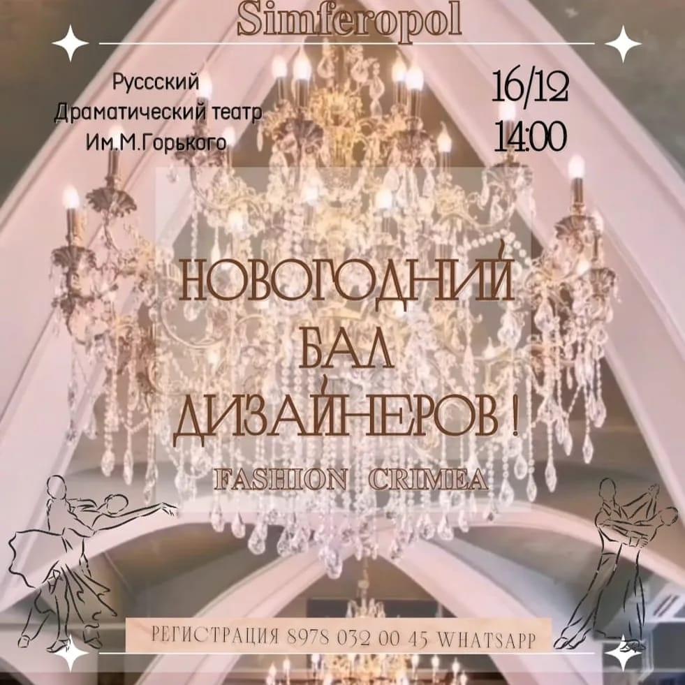 ВПЕРВЫЕ В КРЫМУ ! " НОВОГОДНИЙ БАЛ ДИЗАЙНЕРОВ" " 𝐌𝐎𝐃𝐀 𝐂𝐑𝐈𝐌𝐄𝐀" И ПРЕДСТАВИТЕЛЕЙ " 𝐅𝐀𝐒𝐂𝐇𝐈𝐎𝐍 𝐚𝐧𝐝 𝐁𝐄𝐀𝐔𝐓𝐘 𝐈𝐍𝐃𝐔𝐒𝐓𝐑𝐘" 🇼 🇪 🇱 🇨 🇴 🇲 🇪 дизайнеров РФ и Крыма и основателей и ведущих компаний легкой промышленности, производств, начинающих предпринимателелей и Представителей beauty industry 🎥📺Ждем event и медиа партнеров ПОЗНАКОМИМ ВАС С ТВОРЧЕСКИМИ, МЕДИЙНЫМИ ЛИЧНОСТЯМИ И ОБЩЕСТВЕННЫМИ ДЕЯТЕЛЯМИ И ОБЬЕДЕНИМ 𝐅𝐚𝐬𝐡𝐢𝐨𝐧 𝐚𝐧𝐝 𝐁𝐞𝐚𝐮𝐭𝐲 𝐢𝐧𝐝𝐮𝐬𝐭𝐫𝐲. ▪️16.12.2021 ▪️Государственный Крымский Театр им.Горького ▪️г. Симферополь ▪️ул. Пушкина 15 ▪️14:00 ▪️Регистрация обязательно 8978 032 00 45 WhatsApp ▪️Дресс-код: платья ◼️ГЛАВНЫЕ ГОСТИ 💎Президент Союза Русских Байеров Елена Бурганова 💎Представители министерств Крыма ◼️ДИЗАЙНЕРОВ ЖДУТ УНИКАЛЬНЫЕ ВОЗМОЖНОСТИ: 🎁Презентация своего Бренда на манекене на "Новогоднем Балу дизайнеров"(‼️привезти круглый логотип в диаметре 30 см и логотип на банер прислать‼️) 🎁Размещение Вашего Бренда в Крым