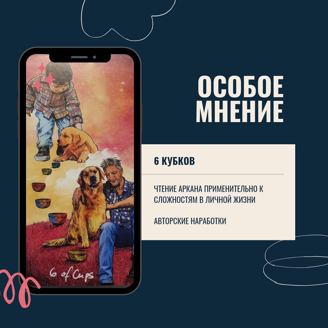 6 кубков – аркан памяти и связи с прошлым. В буквальном прочтении этот аркан указывает на людей и ситуации, которые оставили свой след в жизни и оказали влияние на нас настоящих. С этим все просто и понятно. Я же вам расскажу о том, что показывает нам этот аркан в личных раскладах. Это будет новая рубрика для разговоров о ТАРО. У меня всегда есть свое особое мнение по поводу каждого аркана и его влияния на ту или иную ситуацию, сформированное исключительно на базе личного опыта. Я попробую делиться этим взглядом. Если у вас есть вопросы про арканы, про таро, да про что угодно – задавайте. У меня бывают промежутки времени и вдохновение рассказать. Для личных раскладов пишите в мессенджеры. Вся информация есть в профиле канала.