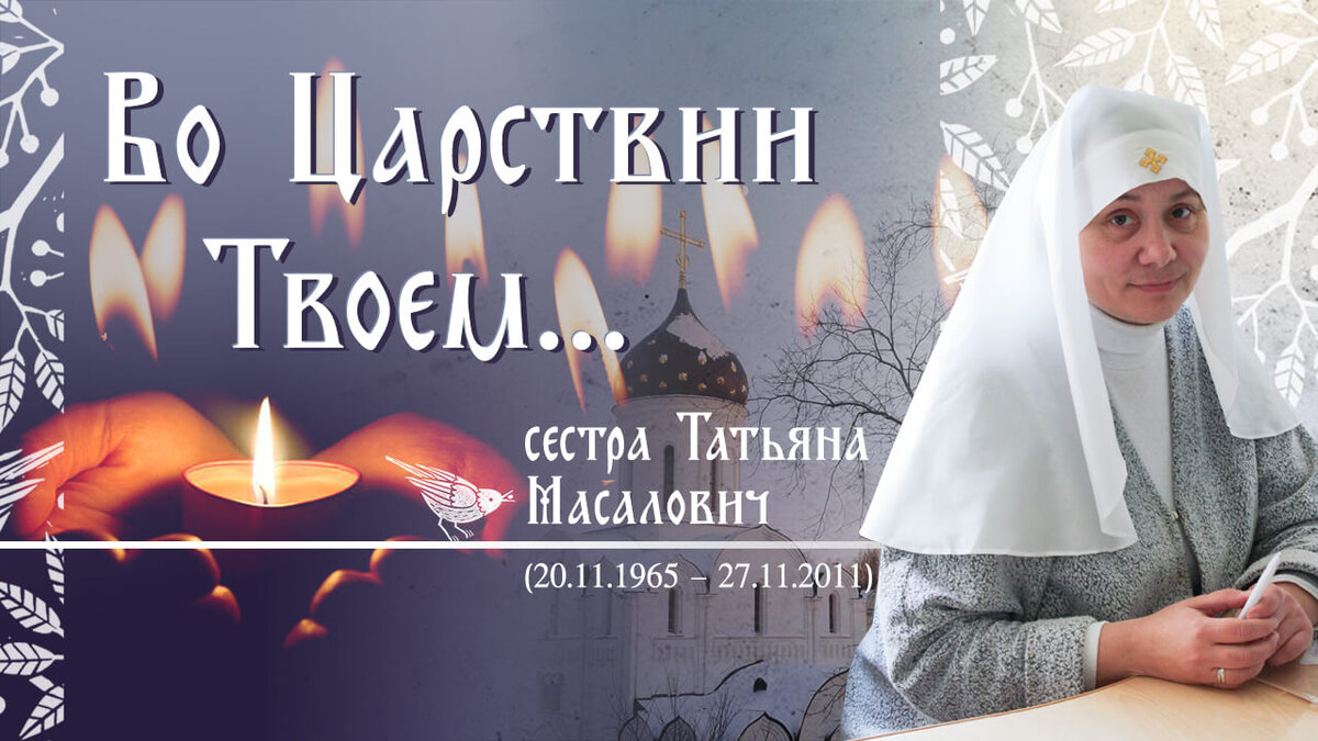 — Татьяна Масалович осталась в моей памяти светлым, добрым и отзывчивым человеком, внутренне сосредоточенным на молитве и памяти о Боге. На послушаниях переносила мысли от земного к Небесному. Всегда была готова выслушать и поддержать.