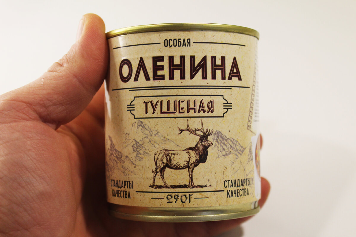 Но сегодня все звезды сошлись, и я заполучил наконец эту баночку с тушеным мясом оленя. Обошлась мне она в 109 рублей.