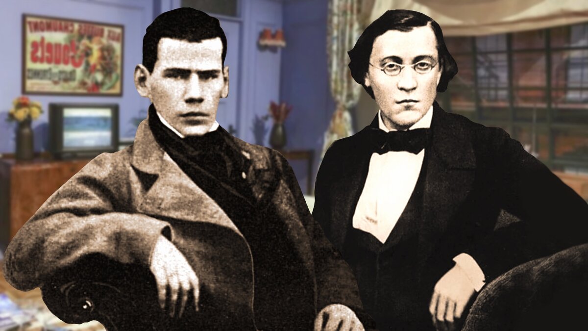В Москве юный Толстой селится в одном доме с Иваном Тургеневым. Тургенев на пике своей славы. Ему на десять лет больше — то есть 38. Он выстрелил своими «Записками охотника», отсидел месяц за некролог Гоголю (что? да), уезжал надолго во Францию — почти в эмиграцию, вступил в странные отношения с Полиной Виардо и ее мужем Полем.