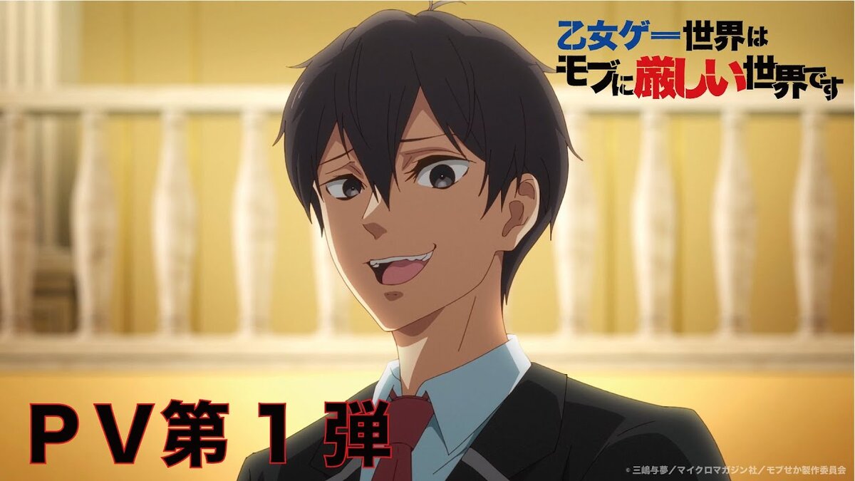 В четверг открылся сайт, на котором анонсируется телевизионная аниме-адаптация романа Ёму Мисимы "В ловушке симулятора свиданий: Мир игр отоме жесток для мобов (Otome Game Sekai wa Mob ni Kibishii Sekai Desu) в апреле следующего года. На сайте было опубликовано первое промо-видео аниме и тизерный визуальный ролик.